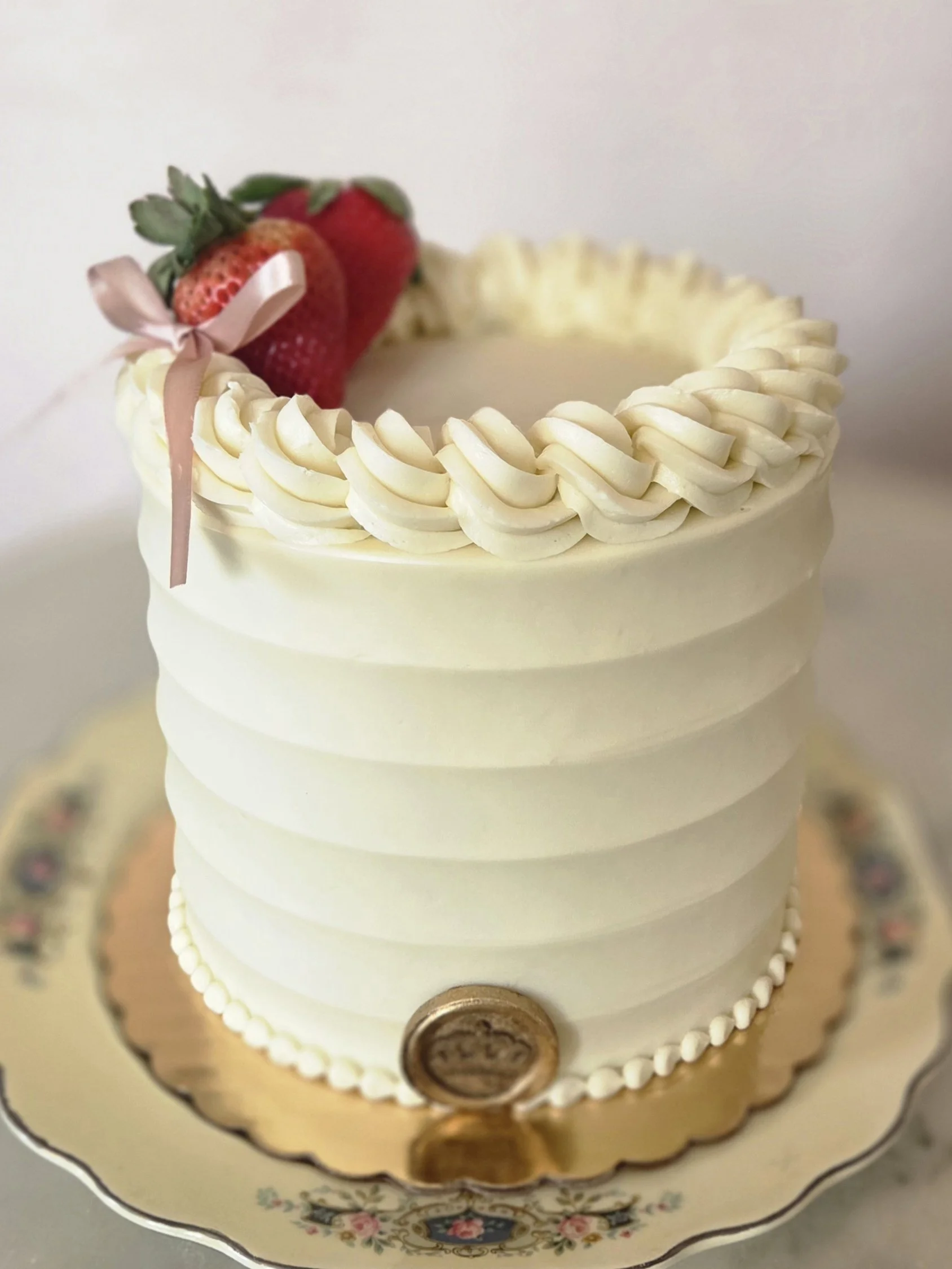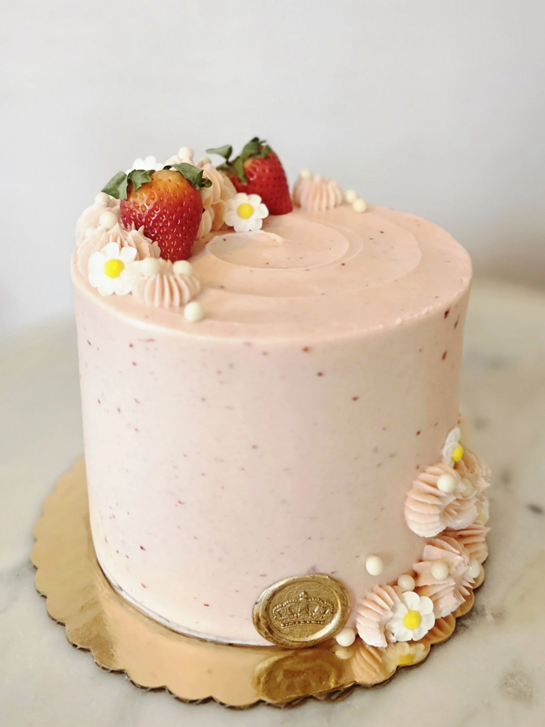 Vanilla Cake with Swiss Meringue Buttercream and Fresh Sliced Strawberries