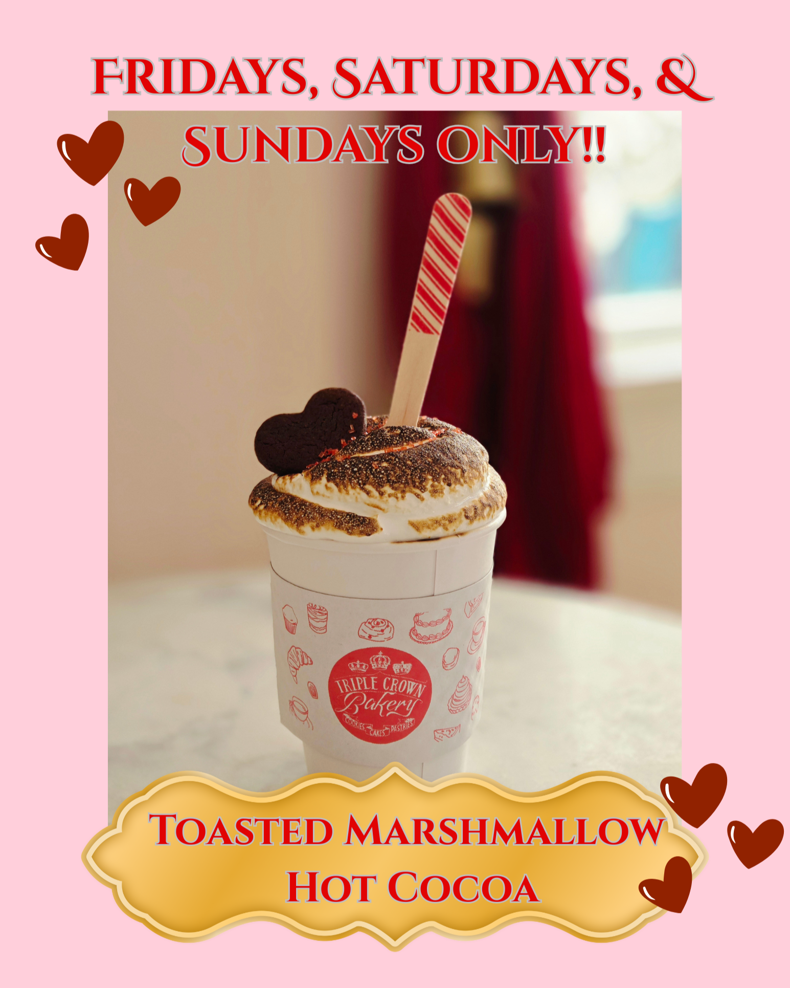 Additionally, we have a Hot Cocoa Service for the chocolate lovers. Includes all the same except it has a pot of homemade hot cocoa and marshmallows